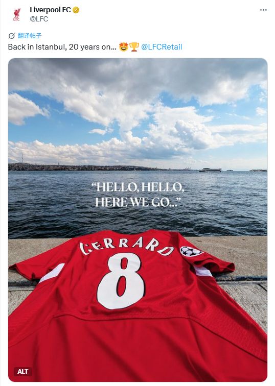 雷速體育10月1日訊 今日凌晨3:00,25/26賽季歐冠聯賽階段第2輪,利物浦將在客場挑戰加拉塔薩雷。這是紅軍時隔20年再度來到伊斯坦布爾,賽前,利物浦官方在社交媒體上曬出了杰拉德的8號球衣,并配文“20年后重返伊斯坦布爾”。